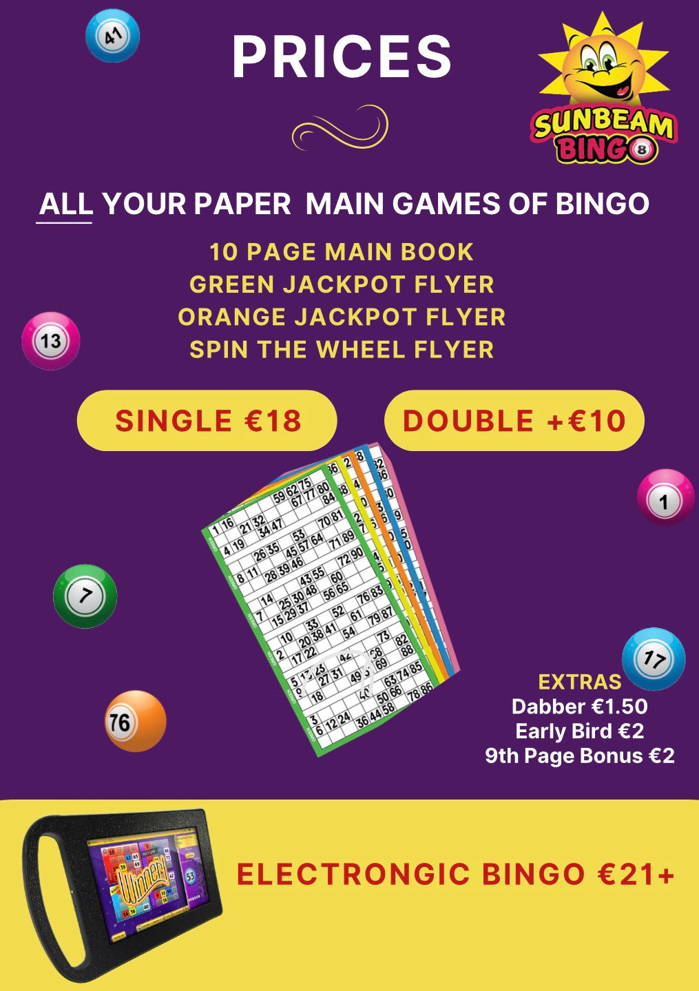 Sunbeam Bingo, Corks' best voted bingo club where you can enjoy fun games and great craic while playing for €1,000's!
